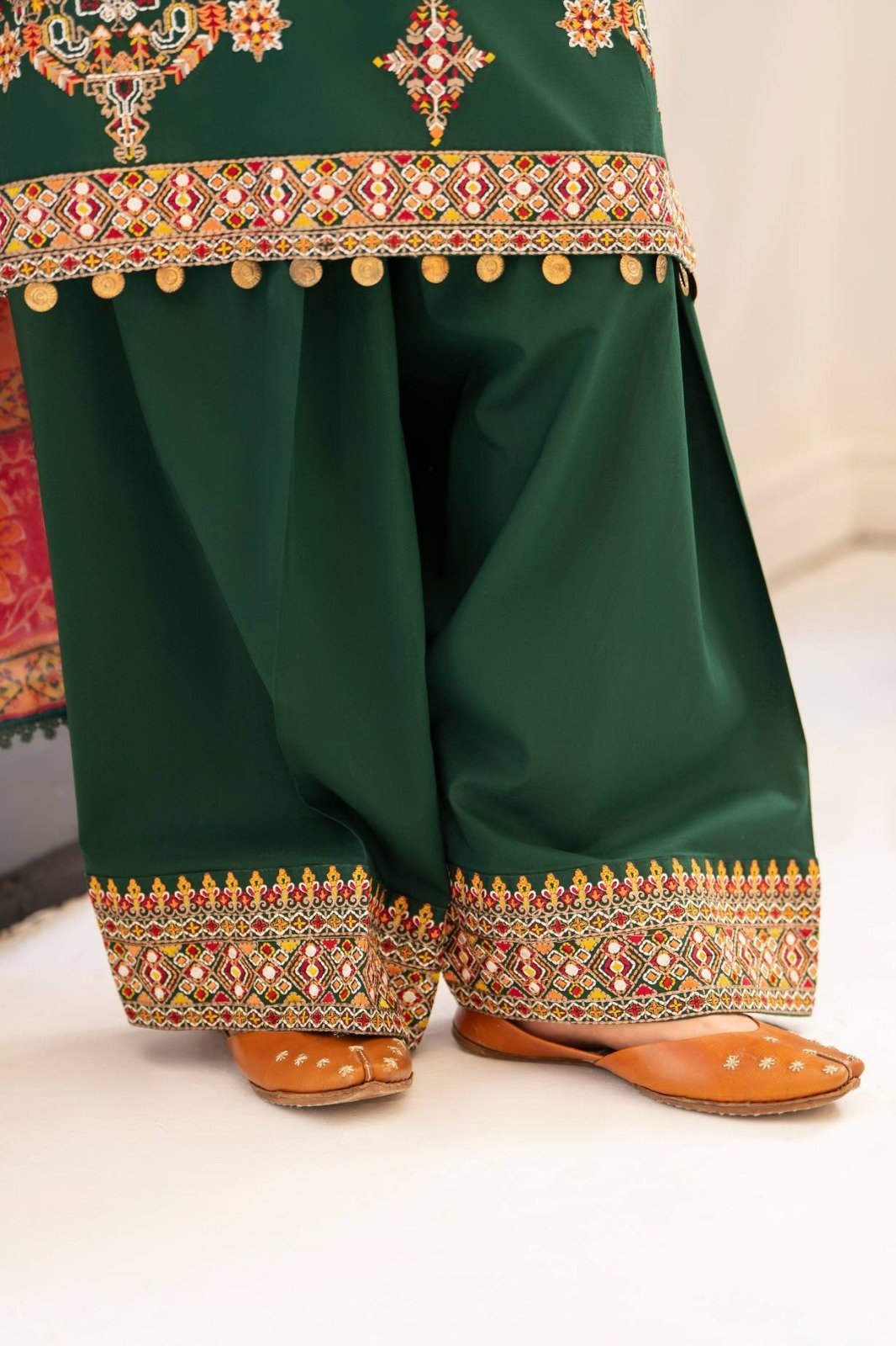 Shirt Fabric : Cotton Short Shirt with Multi Thread work Embroidery and Metals on Sleeves and Border ( Tussels