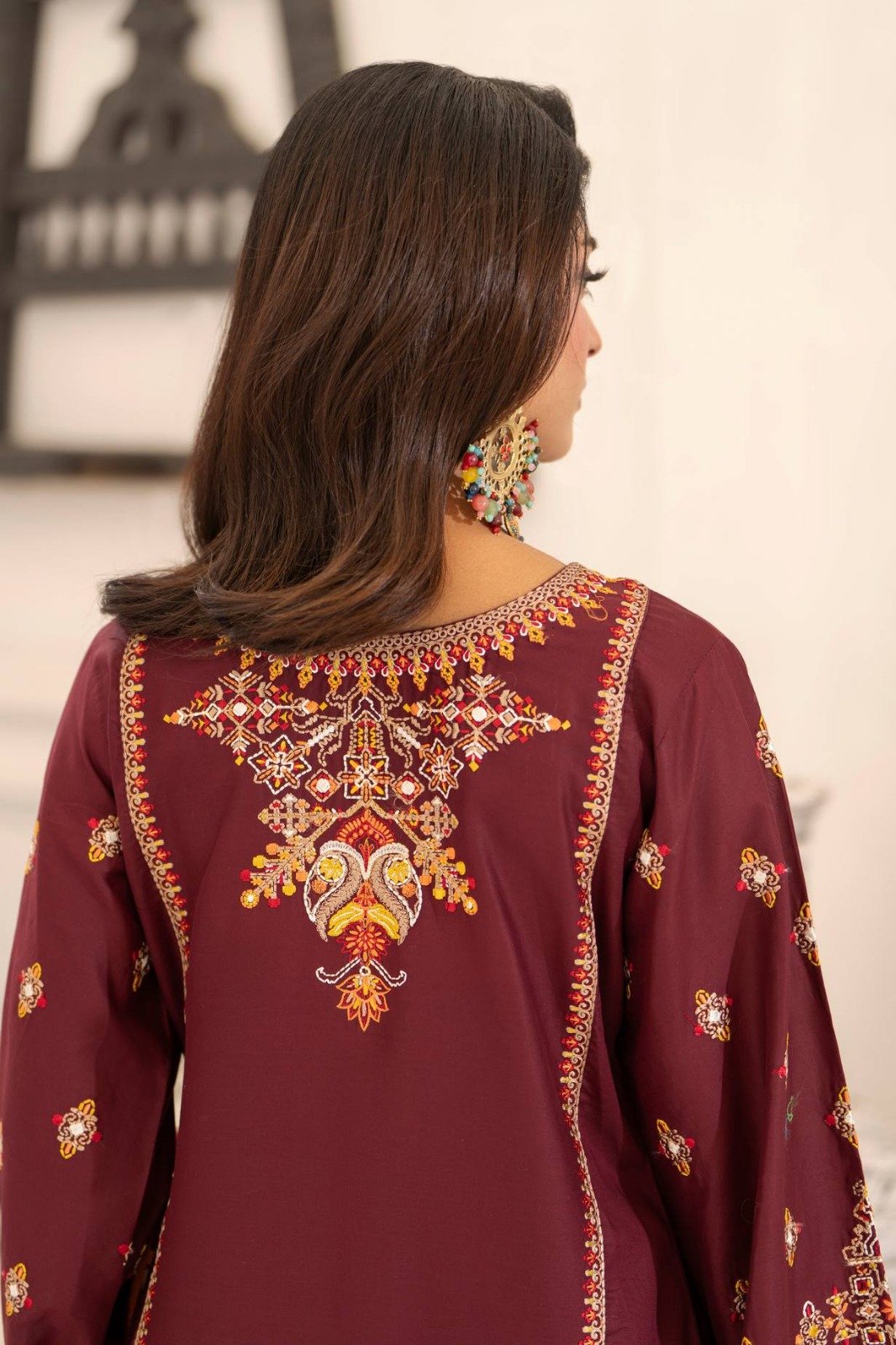 Shirt Fabric : Cotton Short Shirt with Multi Thread work Embroidery and Metals on Sleeves and Border ( Tussels